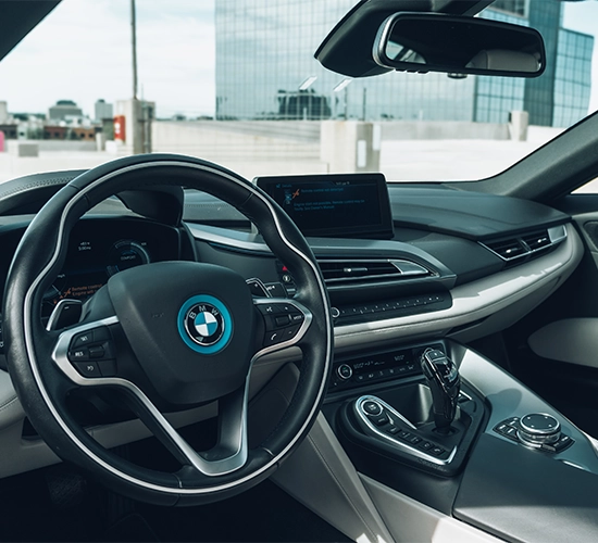 Inside the i8, you’re greeted by a cockpit designed for both luxury and sustainability. The interior seamlessly integrates high-quality materials with advanced technology, creating an environment that is both sophisticated and forward-thinking. The i8’s spacious cabin and ergonomic seating ensure comfort on every journey, while innovative soundproofing enhances the driving experience.